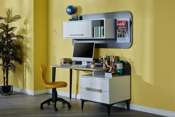 Bureau (Çalışma Masası) : Le bureau offre une surface de travail ample, idéale pour les études ou les activités créatives, avec des tiroirs intégrés pour le rangement des fournitures.