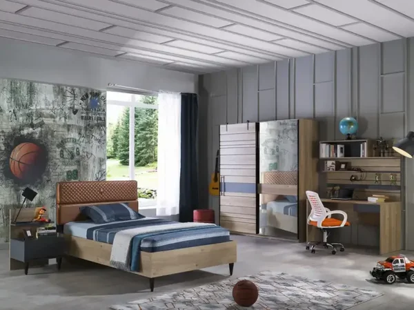 Style Moderne et Élégant : Le design du Lauren Genç Odası Takımı se distingue par une combinaison harmonieuse de couleurs chêne et anthracite, créant une ambiance dynamique et contemporaine.